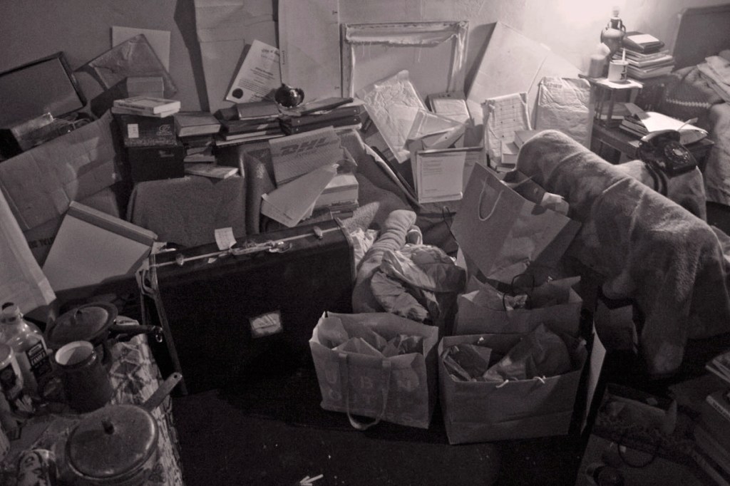 This installation at the 2010 MIX NYC Festival recreates the Lower East Side studio apartment of English writer and queer icon Quentin Crisp. Many items here belonged to Crisp, with replicas replacing unavailable pieces. A film portrait on the television combines family home movies, archival footage, and sound from his one-man show, An Evening with Quentin Crisp.